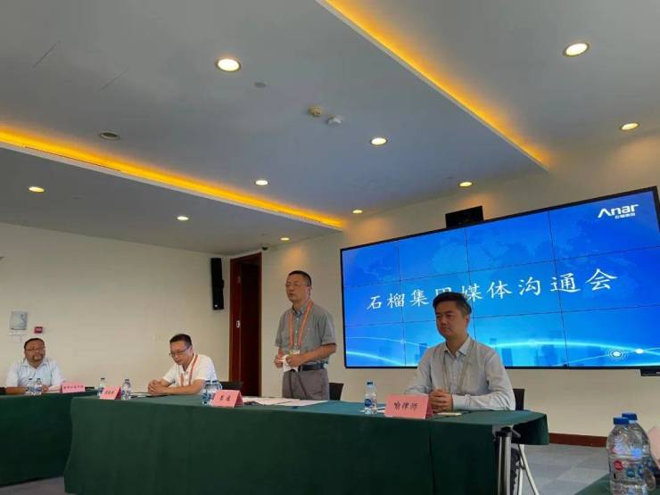 石榴集团董事长崔巍在媒体沟通会上突然下跪