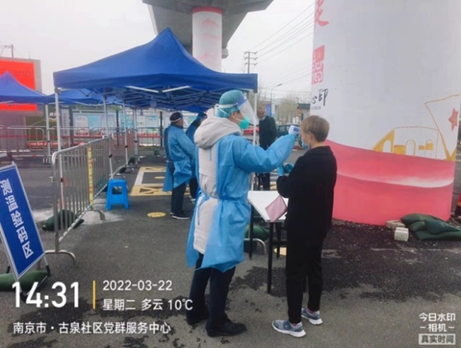 在秣陵街道胜太社区核酸检测点,来自金茂地产开发公司的志愿者董茂杭,正在配合检测点开展现场秩序维护、健康码查验等工作,从上午八点半到达点位,一站就是八九个小时。除了胜太社区核酸检测点,在湖滨社区、下墟社区、太平社区等点位,在秣陵街道、汤山街道,都能看到来自房企志愿者们的身影。