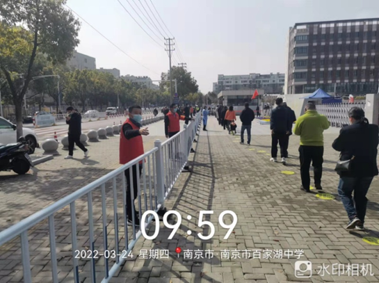 3月22日,40名志愿者前往汤山街道古泉、高庄、阜庄等社区,52名志愿者前往秣陵街道双金、火炬村、太平等社区,15名志愿者前往秣陵街道湖滨社区,共计107名房企志愿者参与核酸检测点位现场秩序维护、群众引导、数据核查等志愿服务工作。
