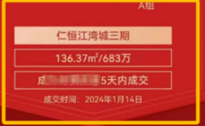 仁恒江湾城三期最新成交一套二手房,136㎡的房源成交价683万,单价5万/㎡;