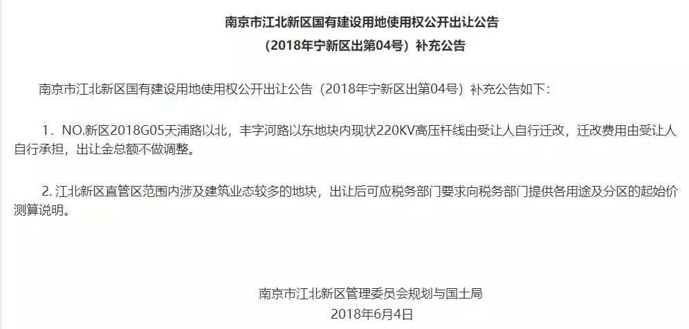 宅妹在南京国土局网站上看到G05地块的补充公告,G05地块现状220kv高压干线由受让人自行迁改,且迁改费用由开发商自行承担,且地块出让后还得向税务部门提供各用途及分区的起始价测算说明,可能是这两个原因导致G05地块受让门槛较高,所以终止出让了。
