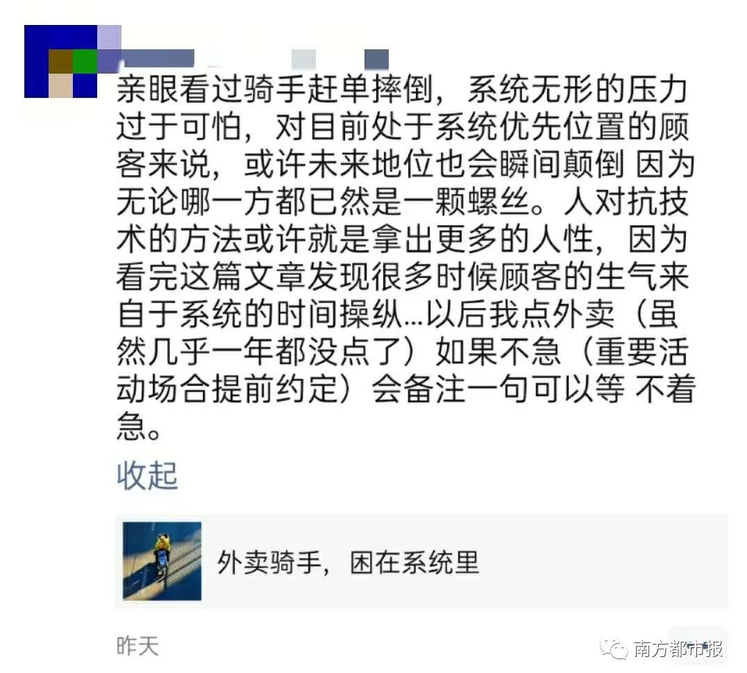 文章刷屏的同时,几乎所有网友都认为“算法无情人有情”,理解骑手们的不容易: