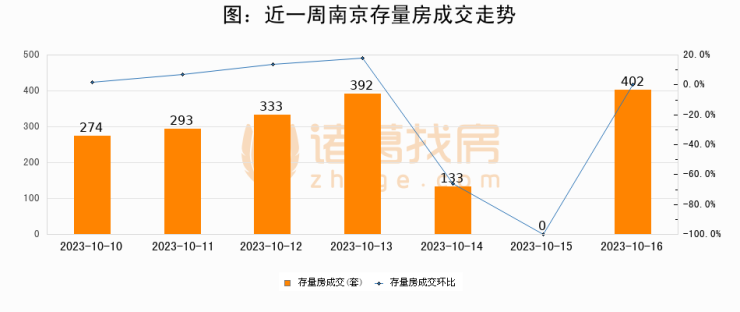 从存量房来看,2023年10月16日南京存量房单日成交402套,比昨日增加402套,环比上涨0%。从近一周存量房成交来看,南京存量房日均成交套数为261套,10月16日单日成交402套,高于近一周平均水平54%。