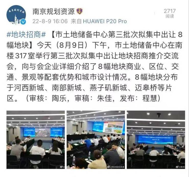 就在刚刚,南京规划资源微博发文:南京市土储中心第三批次拟集中出让8幅地块。