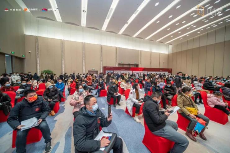 首开当天,扬子江国际会议中心现场红毯铺路,人声鼎沸如潮,一派节日盛势,可谓是室外凛冬0°,室内热销38°,温度与热度齐发!