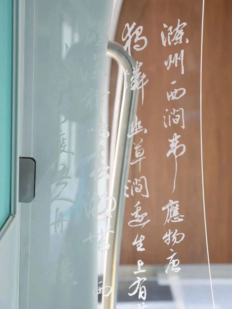 在内饰设计方面,列车客室将金丝楠木的颜色融入座椅设计,屏风上摘录了滁州西涧和醉翁亭记中的部分名句,整个客室营造出了"多方胜景,咫尺山林"的审美效果,彰显一城人文山水,千年诗话滁州的文化魅力。