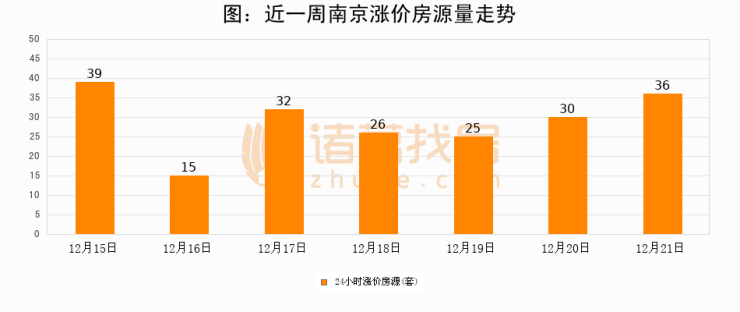 根据诸葛找房数据显示,南京24小时涨价房源量为36套,较12月20日增加6套,环比上涨20%。与此同时,涨价房源占比小幅扩大,业主信心有所提升。