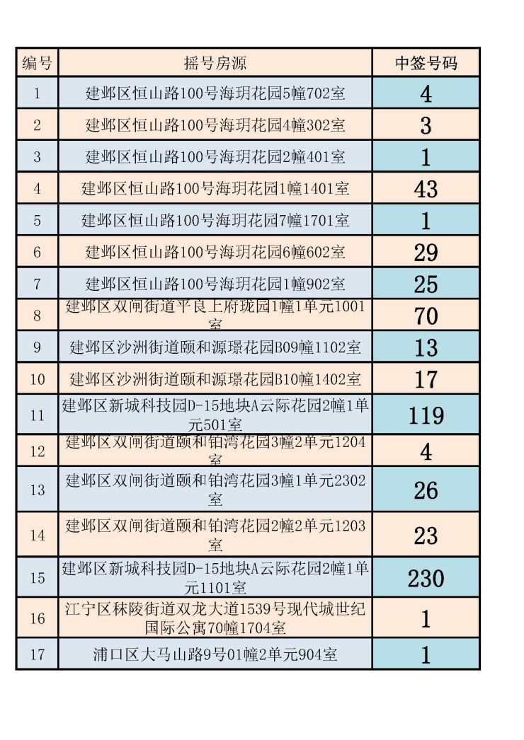 南京市10月份41套退房房源今日摇号,本次网络直播退房摇号中签名单,现结果公示如下: