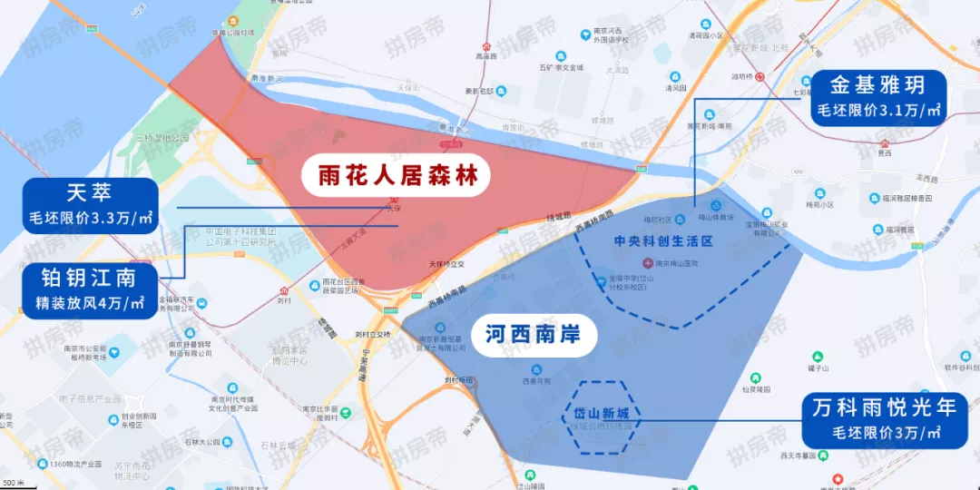 今年南京风头最盛的板块当属城南雨花区,两场集中土拍强势崛起,区域内多幅地块触顶摇号,不可谓不亮眼。作为雨花板块内拥有超高人气的雨花人居森林和较先为大家熟悉的河西南岸(注:本文中河西南岸所指区域为中央科创生活区+岱山新城区域),自然引起了广泛热议。