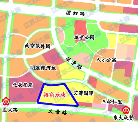 本地块位于地铁3号线星火路站、东大成贤街站双站之间,依托地铁、江北大道可快速畅达全城。本地块紧邻规划片区南部组团的地标节点,周边生活配套十分完善,是区域内十分稀缺的二类居住用地,西侧为龙湖北辰星座,南侧一路之隔为东大成贤学院,区域市场较为成熟。
