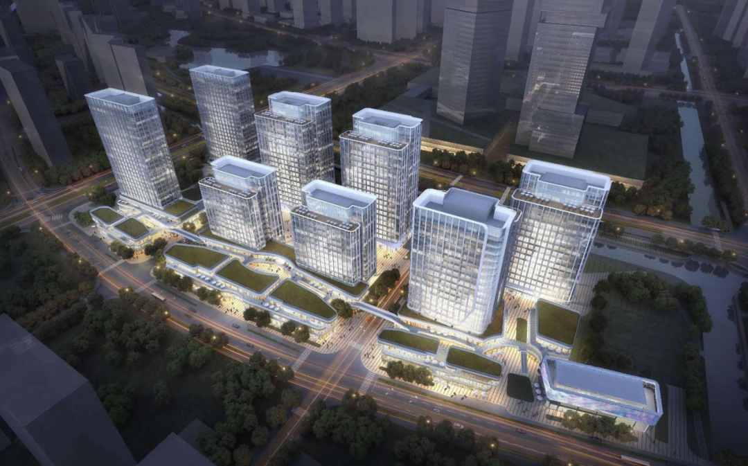 地块内规划了两栋酒店式公寓、一栋办公楼是58集团华东区域总部、两栋办公楼自持、三栋办公楼销售。项目涵盖智慧化复合办公空间、24小时活力休闲街区、生活配套商业、精品公寓等多元业态,打造数字经济总部基地和创新活力综合体,地上建筑面积约23万平方米。