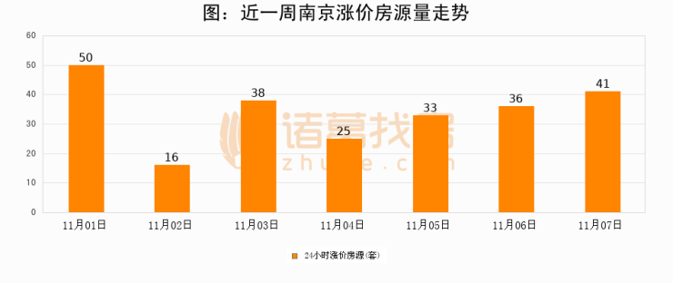 根据诸葛找房数据显示,南京24小时涨价房源量为41套,较11月06日增加5套,环比上涨13.9%。与此同时,涨价房源占比小幅扩大,业主信心有所提升。