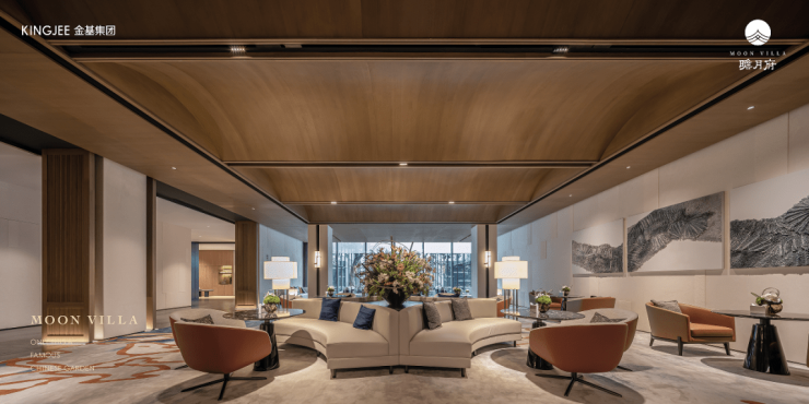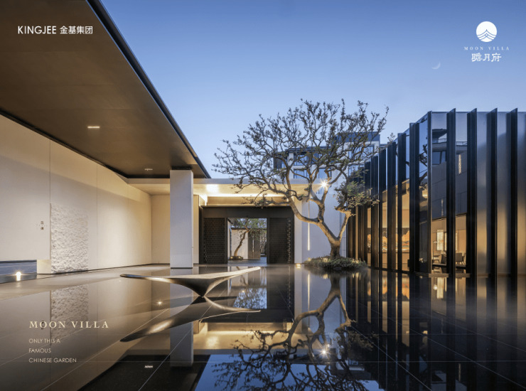 越是高端项目,越是具备脱颖而出的气质。逐月亭270°视线环绕三面观水,光亭顶部透光,点题“逐月”,雅趣茶室,无梁无顶。逐月水院,清波艺廊卡座,仿佛高端度假区。