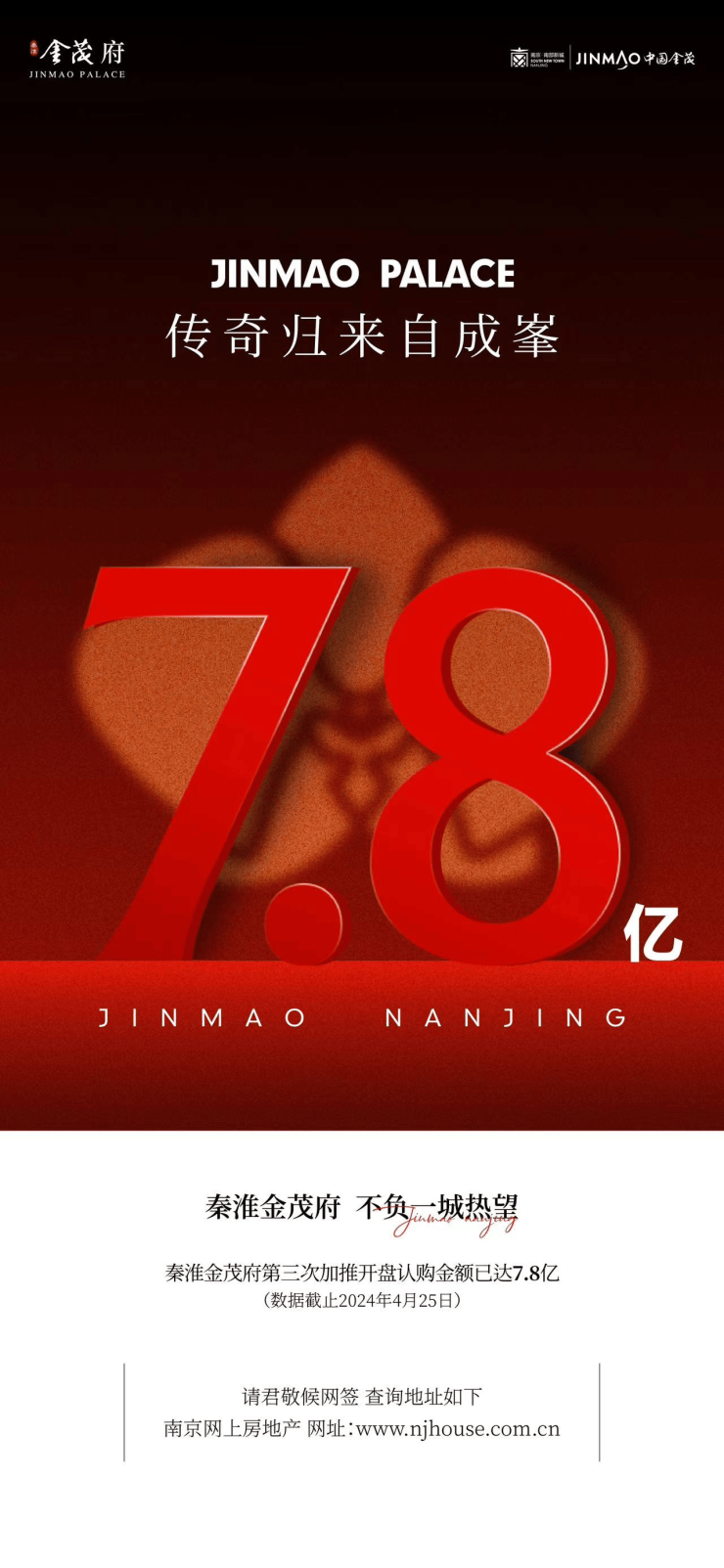 数据的真实性也通过南京网上房地产得到了印证!截至4月30日,秦淮金茂府加推的B3#、B4#和B6#号楼共206套房源,认购+成交已经上传了101套,并且数据还在上传之中,说明秦淮金茂府可谓是“实打实”的热销!