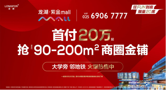 首付20万起,不过是环南京都市圈一套房的首付,但在龙湖紫金MAll却可以买一套建面约90—200㎡的城市中心商铺!