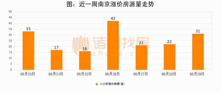 根据诸葛找房数据显示,南京24小时涨价房源量为31套,较08月28日增加9套,环比上涨40.9%。与此同时,涨价房源占比小幅扩大,业主信心有所提升。