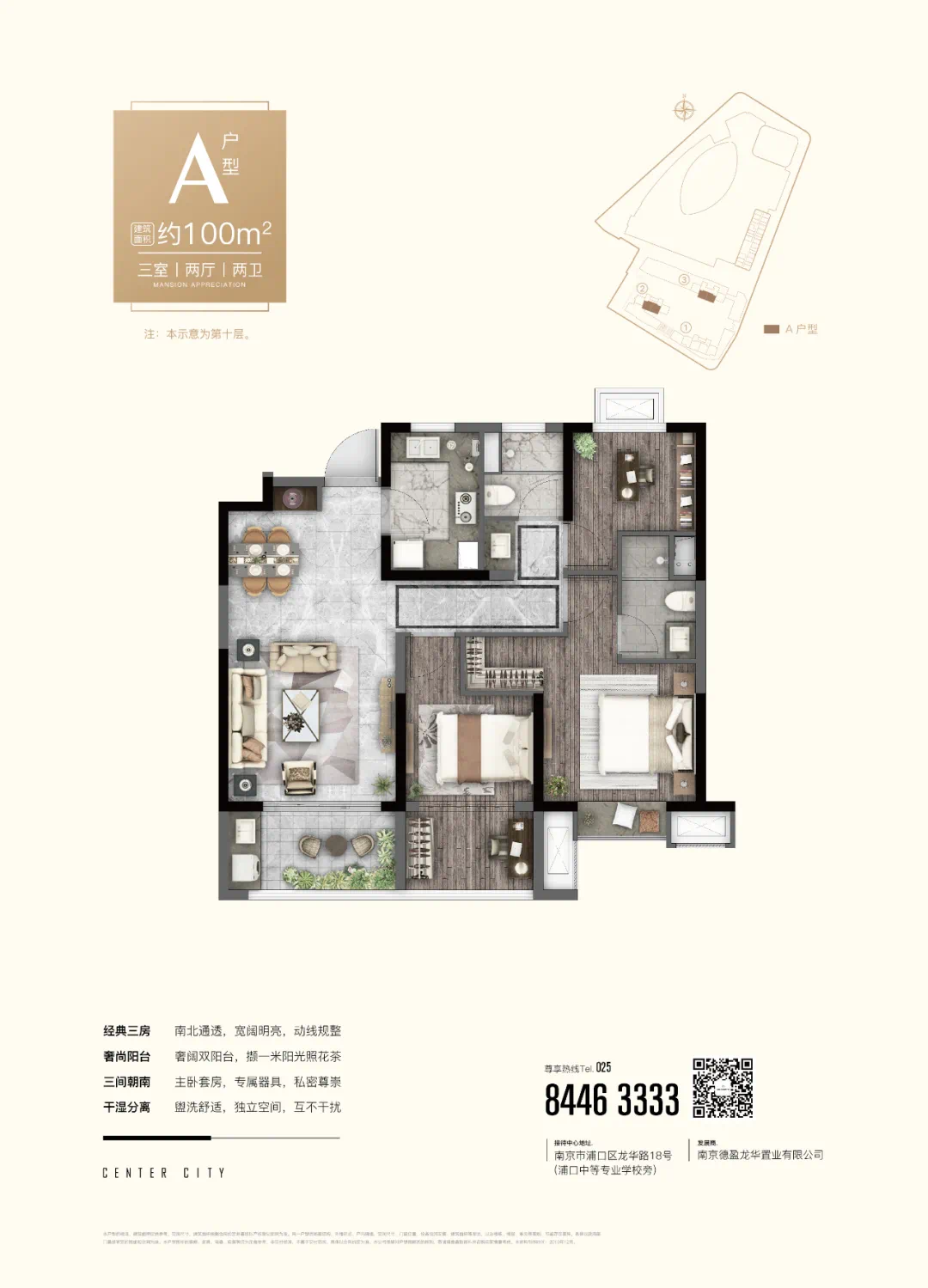从德盈龙华国际广场的规划来看,整个社区只打造了3栋住宅楼,目前在售的是建筑面积约100㎡三房两厅两卫、建筑面积约121㎡三房两厅两卫两种户型。