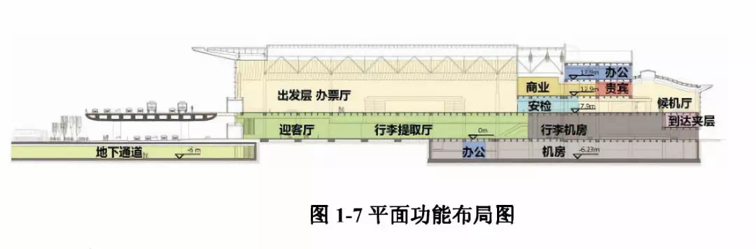 改扩建后,航站楼自上而下共设有6个楼层,分别是办公层、出发夹层、出发层、到达夹层、站坪层、地下机房共同沟层。