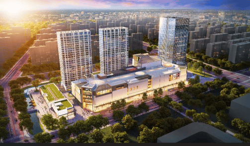 项目总建筑面积约23万方,涵盖了购物中心、商业街区、1栋甲级写字楼以及2栋精装酒店式公寓。其中,总体量约8万方的购物中心计划于今年年底开业。