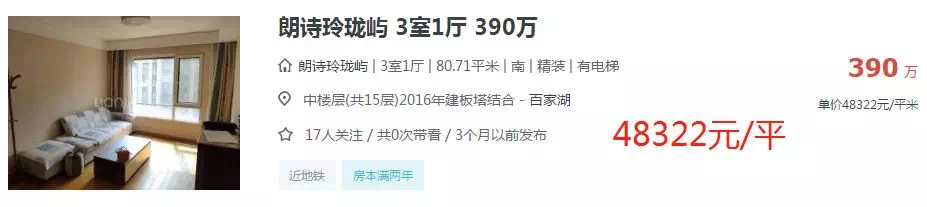 在二手房网站上狐妹看到,今年3月一套84平米房源成交单价已达44955元/平!看来在北小分校学区的加持下,区域品质二手房选择面少,价格还会涨!