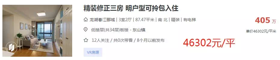 目前龙湖春江郦城挂牌价在4万/平左右,报价较高的一套为87平米,总价405万,单价达到46302元/平,不过目前没有成交,一旦成交或将刷新板块较高价。