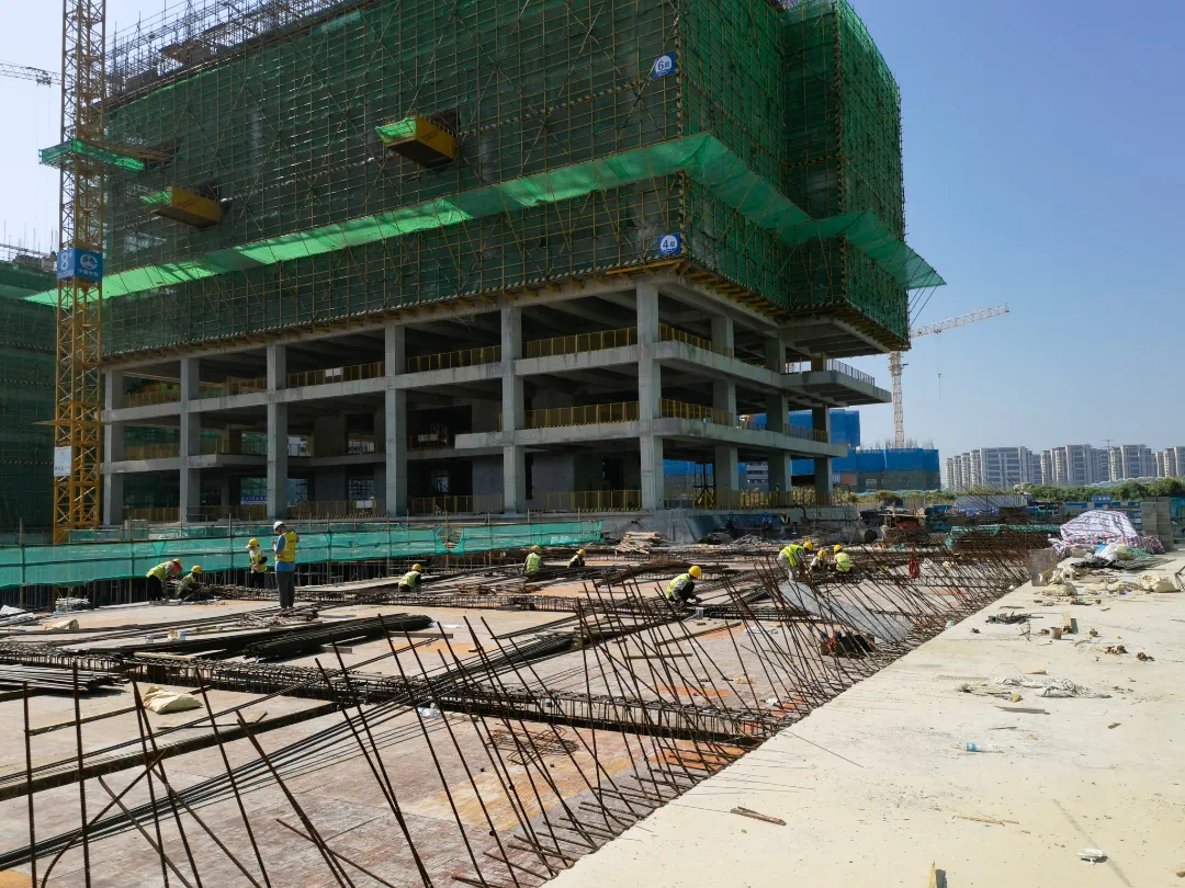 目前,天印健康创新园项目正在进行大面积主体结构施工,25栋单体建筑中,有4栋已主体封顶,到今年底,预计将有16—18栋单体建筑主体封顶,整个项目预计在2023年4月具备竣工条件。