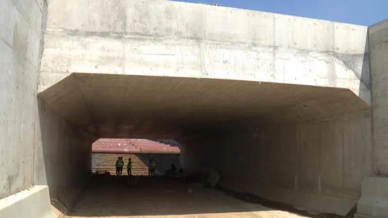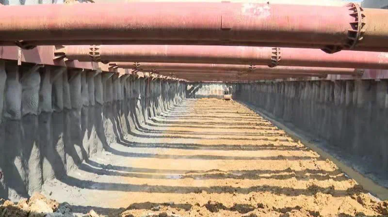 在建设现场,施工人员正在推进深基坑土方开挖、第三道钢支撑工作。项目建设全程要保证104国道交通不中断,因此隧道施工采用预制箱涵顶推方式进行,基坑深达10米,土方开挖工程量大,工程建设者克服作业面狭窄等不利影响,连续开展掘进作业,为隧道主体工程建设创造条件。