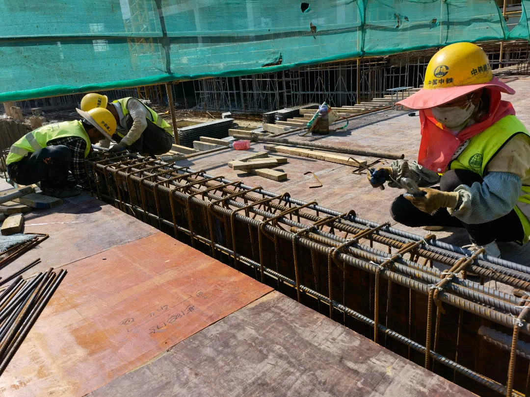 各栋建筑内,钢筋工、木工、瓦工、水电工等各工种的建筑工人各司其职,整个项目施工规范有序、有条不紊。