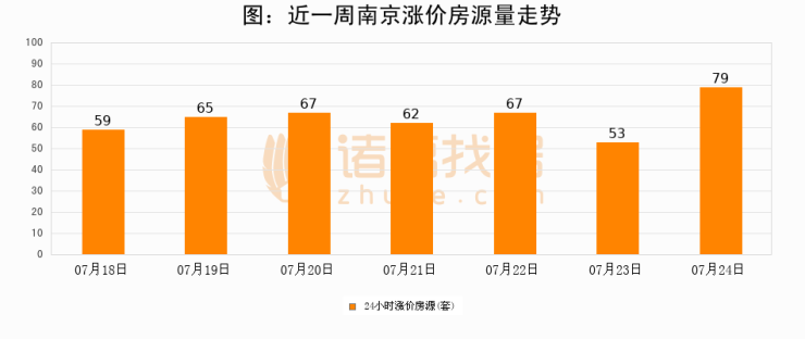 根据诸葛找房数据显示,南京24小时涨价房源量为79套,较07月23日增加26套,环比上涨49.1%。与此同时,涨价房源占比小幅扩大,业主信心有所提升。