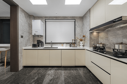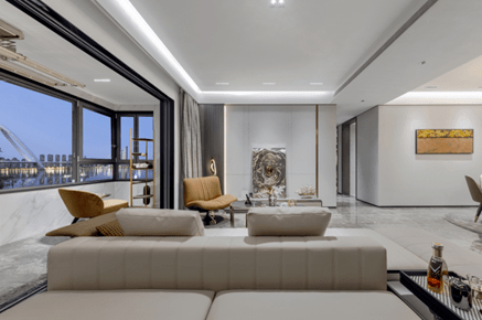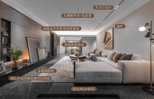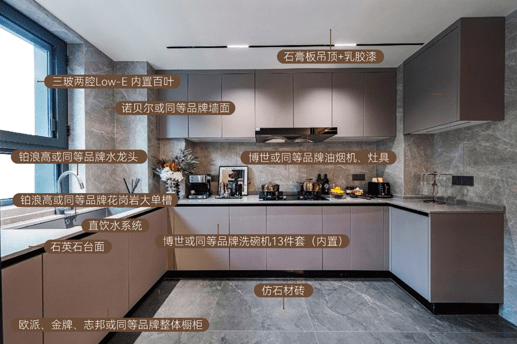 江尚紫薇也凭借“所见即所得”的样板间收获买房人的心,有买房人参观过之后就对客厅到厨房一体化的地面铺设念念不忘,地面通铺的大砖规格到达了600*1200,十分有质感。此外全屋悬浮式吊顶、全屋艺术墙布、全屋不锈钢凹踢脚线、定制岩板台面,国际品牌地暖、中央空调、新风系统,中央净水系统,智能化控制系统……打造真正的高标准改善人居。