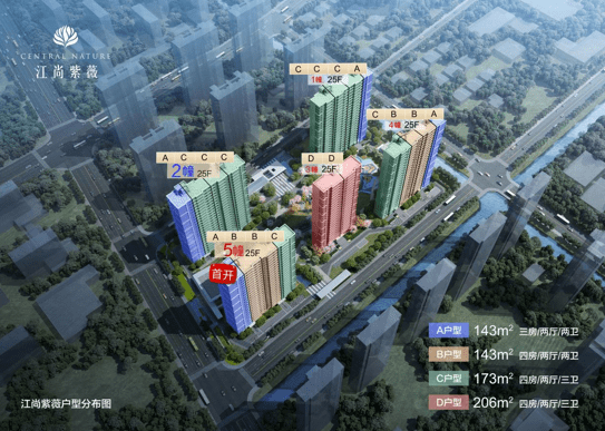 延续以往奥体建设做改善的传统,这次江尚紫薇&云尚紫薇仍然面向改善&终改人群。江尚紫薇打造的是5栋25F的高层,户型建面约143-206平米,起步户型143平米,且建筑密度仅约16.97%。
