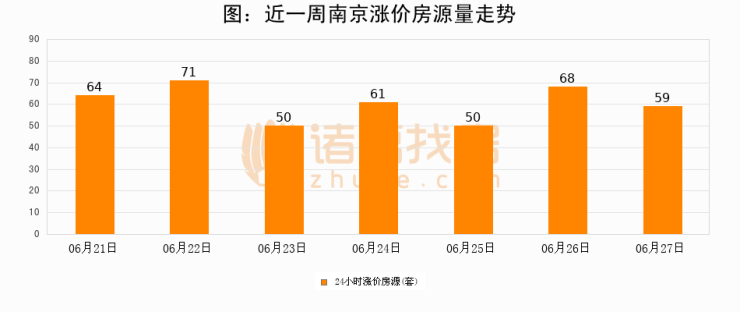 根据诸葛找房数据显示,南京24小时涨价房源量为59套,较06月26日减少9套,环比下降13.2%。与此同时,涨价房源占比小幅回落,对于购房者来说是一个入市窗口期,购房者可抓住时机入市。