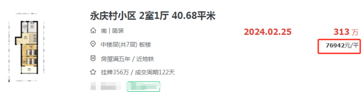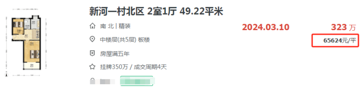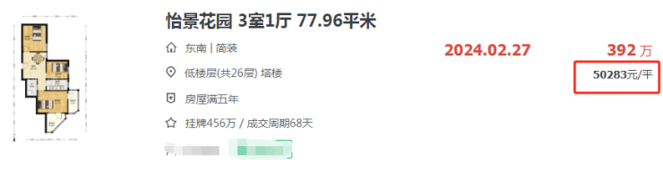 2024年2月,77.96平低楼层,成交单价50283元/平