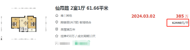 2024年3月,61.66平高楼层,成交单价62440元/平