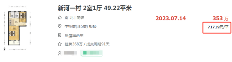 2023年7月,49.22平中楼层,成交单价71719元/平