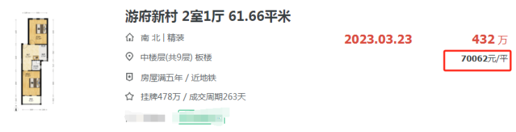 2023年3月,61.66平中楼层,成交单价70062元/平