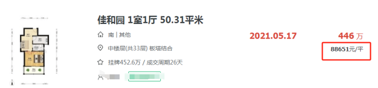 2021年5月,50.31平中楼层,成交单价88651元/平