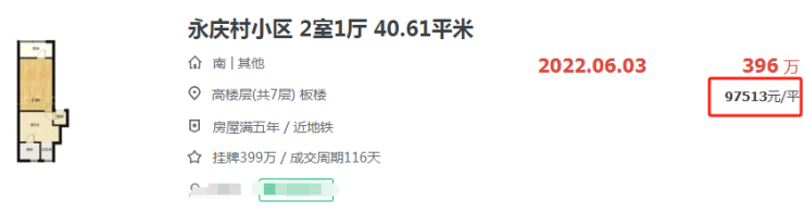 2022年6月,40.61平高楼层,成交单价97513元/平