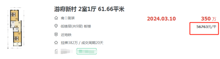 2024年3月,61.66平低楼层,成交单价56763元/平
