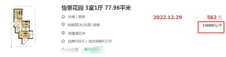 2022年12月,77.96平低楼层,成交单价72089元/平