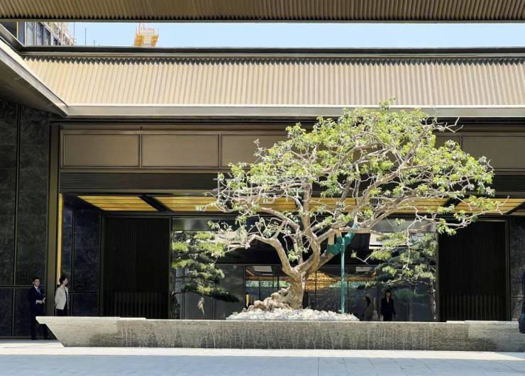 项目目前还没公开,看房哥只能站在门口窥探了一下,中间天井下的这株铁冬青,据说耗资150万,更多的细节还要等示范区公开才能一睹真容了。