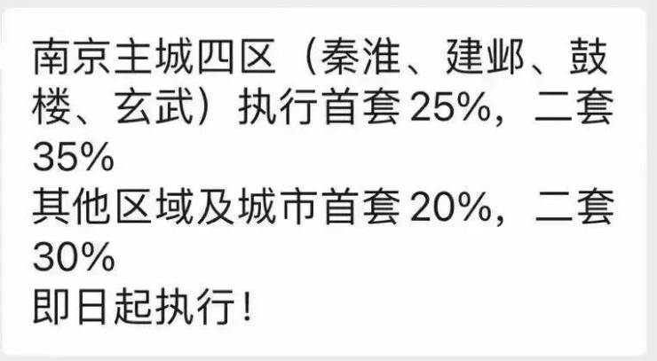 但就在这两天有消息称南京各大行叫停主城四区(玄武、秦淮、建邺、鼓楼)二成首付,仍执行原政策:首套3成,二套4成!二套利率也从4.4%上调至4.5%!其他各区不变:首付最低2成,二套最低3成。