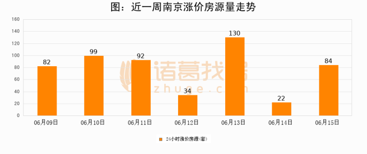 根据诸葛找房数据显示,南京24小时涨价房源量为84套,较06月14日增加62套,环比上涨281.8%。与此同时,涨价房源占比小幅扩大,业主信心有所提升。