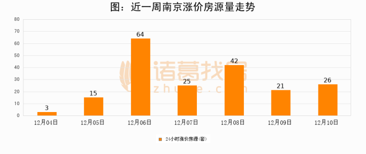 根据诸葛找房数据显示,南京24小时涨价房源量为26套,较12月09日增加5套,环比上涨23.8%。与此同时,涨价房源占比小幅扩大,业主信心有所提升。