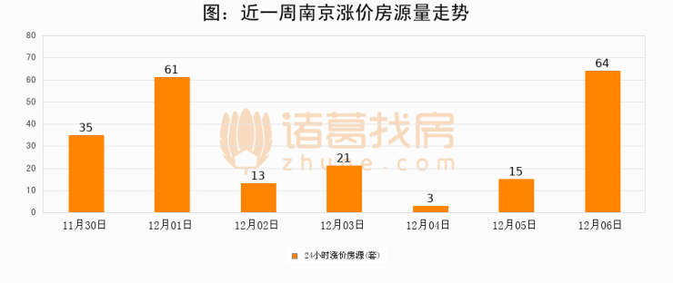 根据诸葛找房数据显示,南京24小时涨价房源量为64套,较12月05日增加49套,环比上涨326.7%。与此同时,涨价房源占比小幅扩大,业主信心有所提升。