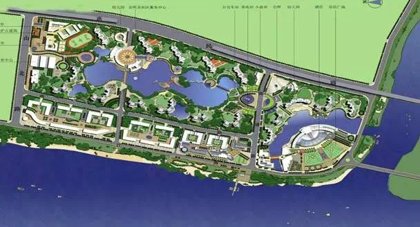 下图:世茂滨江新城最早的规划版本,拟打造南京较大的人工“泳湖”和中央水系园林。单是内部水域面积,放眼全国无出其右