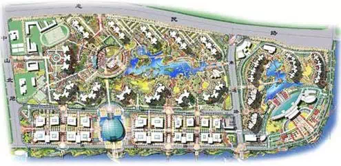 后来修改规划,缩小水域面积,但八大主题园林得以保留