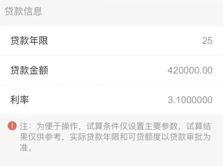 试算结果仅供参考,实际贷款年限和贷款金额须以贷款审批结果为准。
