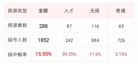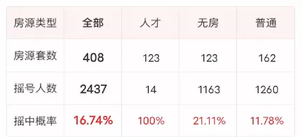 两次开盘相隔一个月,报名人数少了近1000组,同时人才少了一半,无房少了826组,普通组却相差不大。
