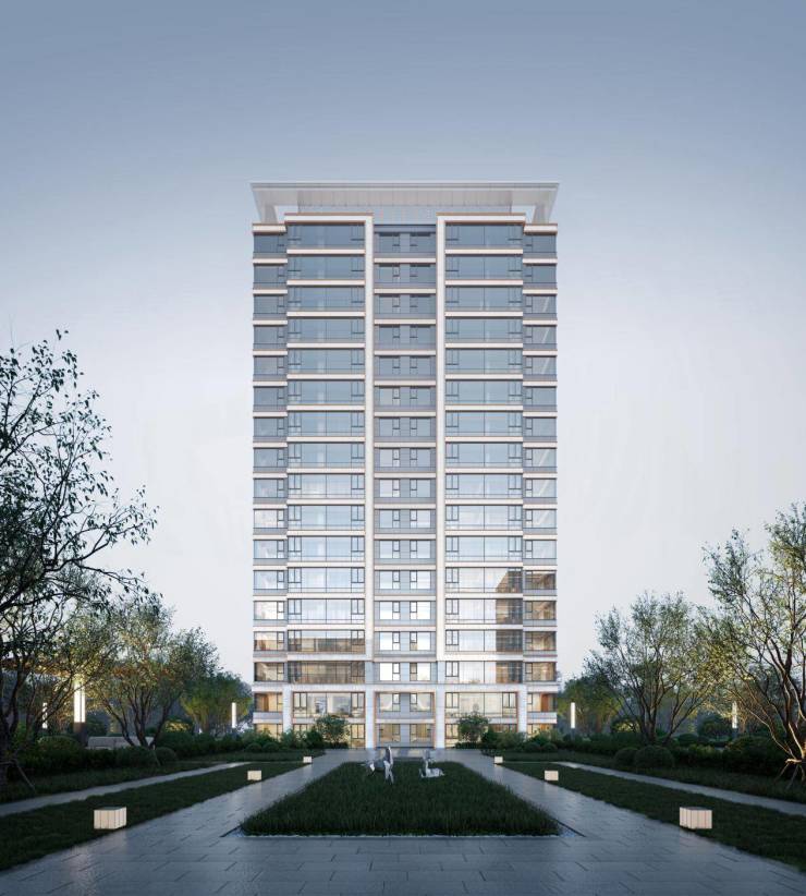 在建筑立面设计上,思以“长江灯塔”为设计理念, 浅米白色系和深灰色系冷暖搭配,结合铝板线条线角,打造百家湖新的地标天际线。